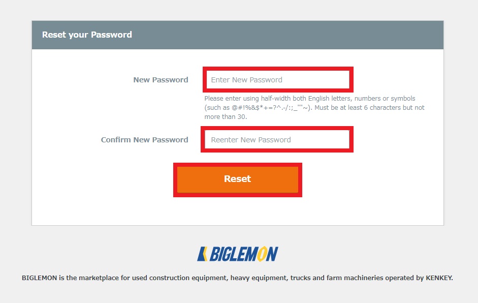 7. [Your Password has been reset.] message will appear and the Password is safely changed. You will also receive an Email from KENKEY to confirm that your Password reset has been completed.