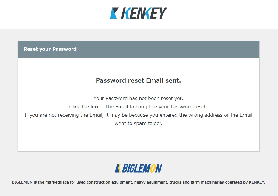 4. An Email from KENKEY will be sent to your registered Email address. Click the URL in that Email. This URL is only valid for 30 minutes after you receive the Email. If it expires, please redo the steps from the beginning.