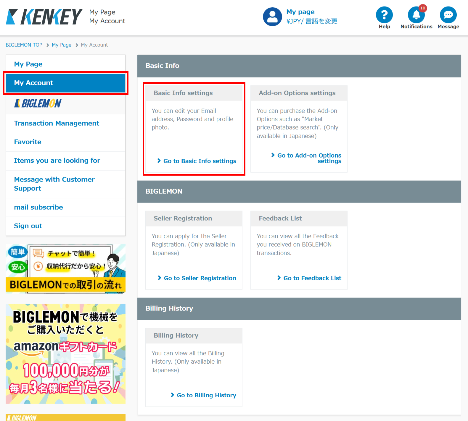 2. Click My page → My Account → [Basic Info settings].