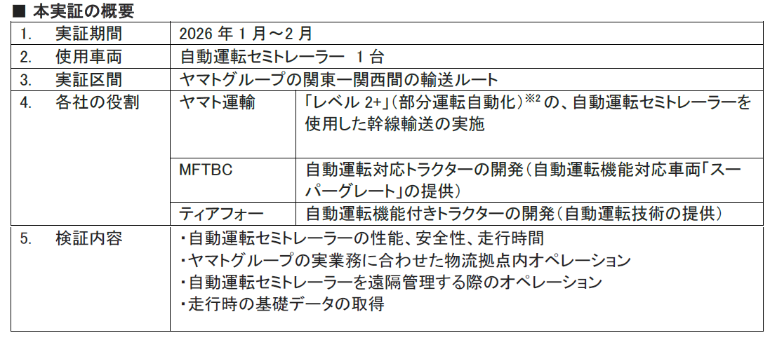 2026年1月からヤマトグループの関東ー関西間の幹線輸送で実証を開始