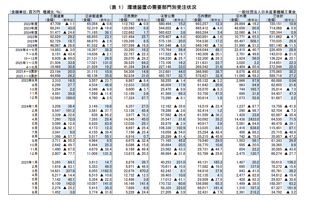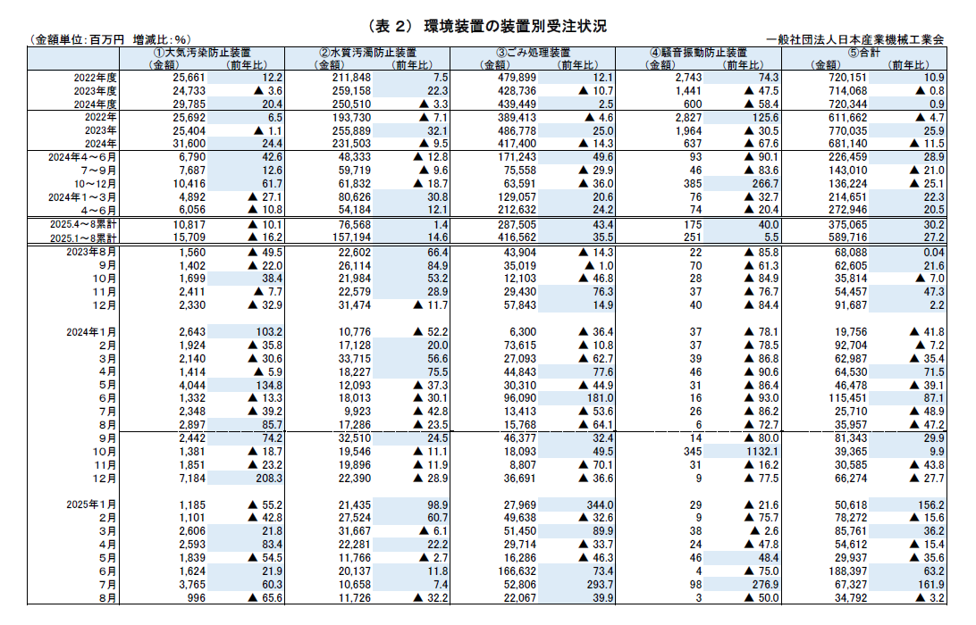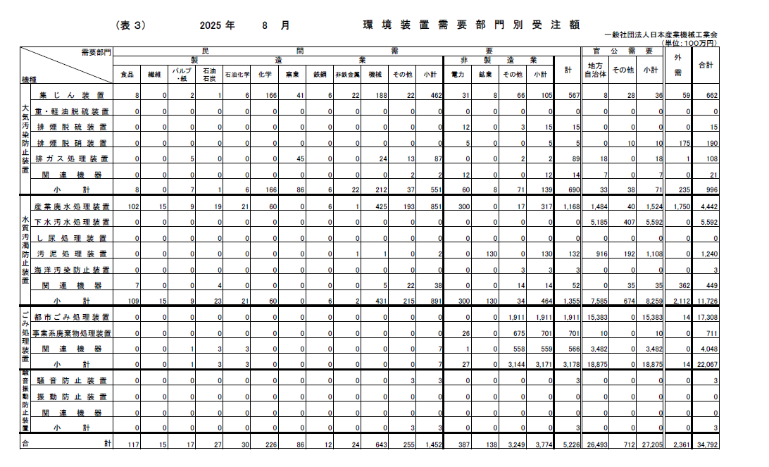 化学向け集じん装置、機械向け集じん装置、産業廃水処理装置の増加により、3.8%増となった。