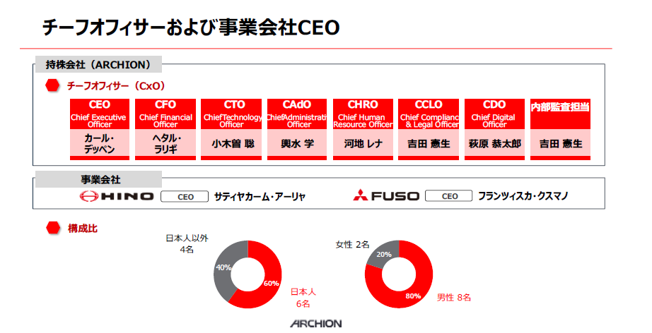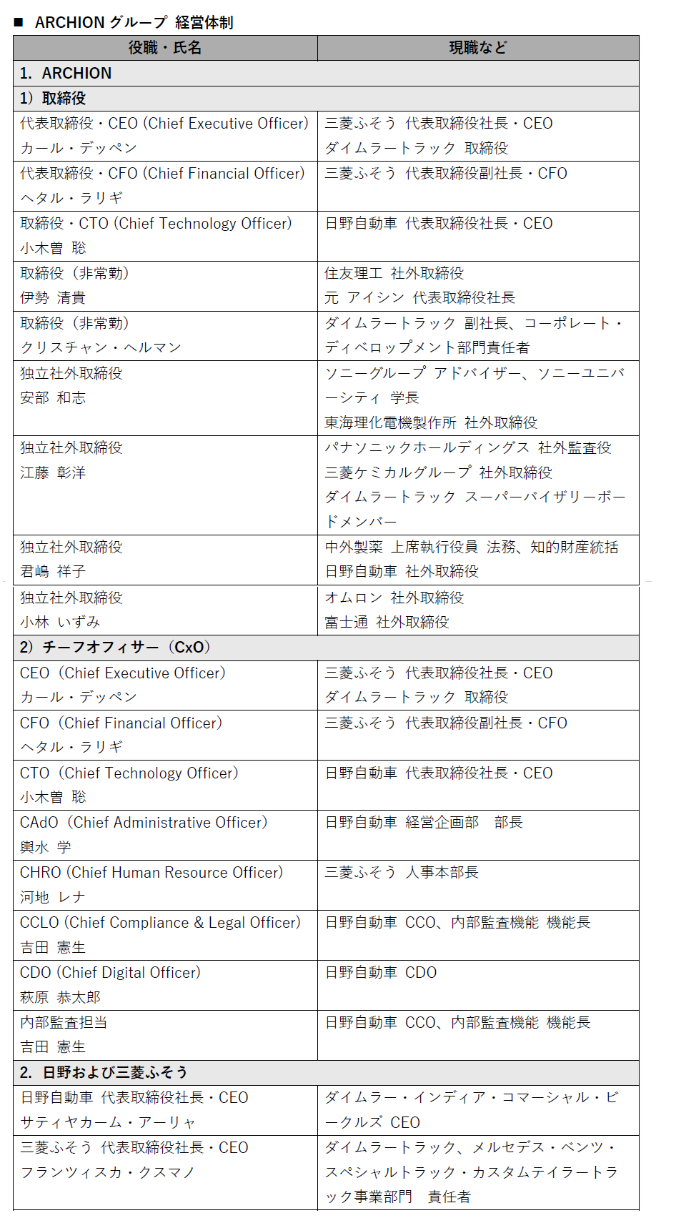 - ARCHIONの取締役およびチーフオフィサー(CxO)、ならびに日野および 三菱ふそうのCEOを内定