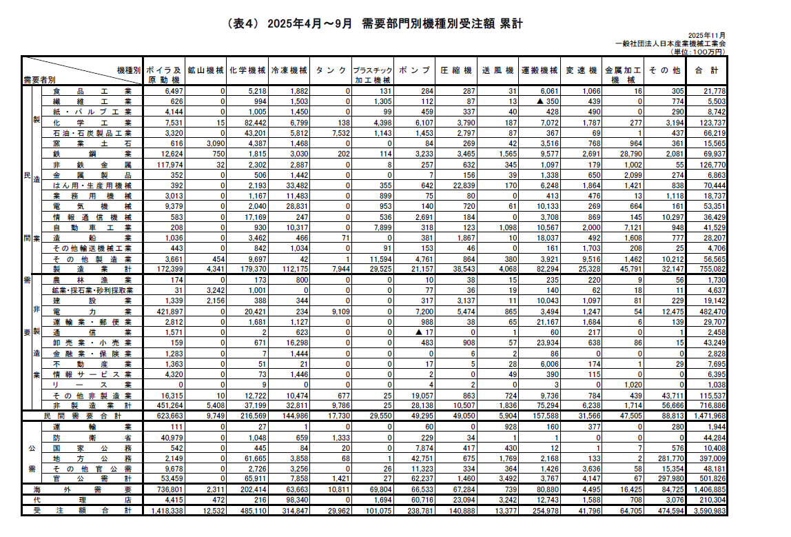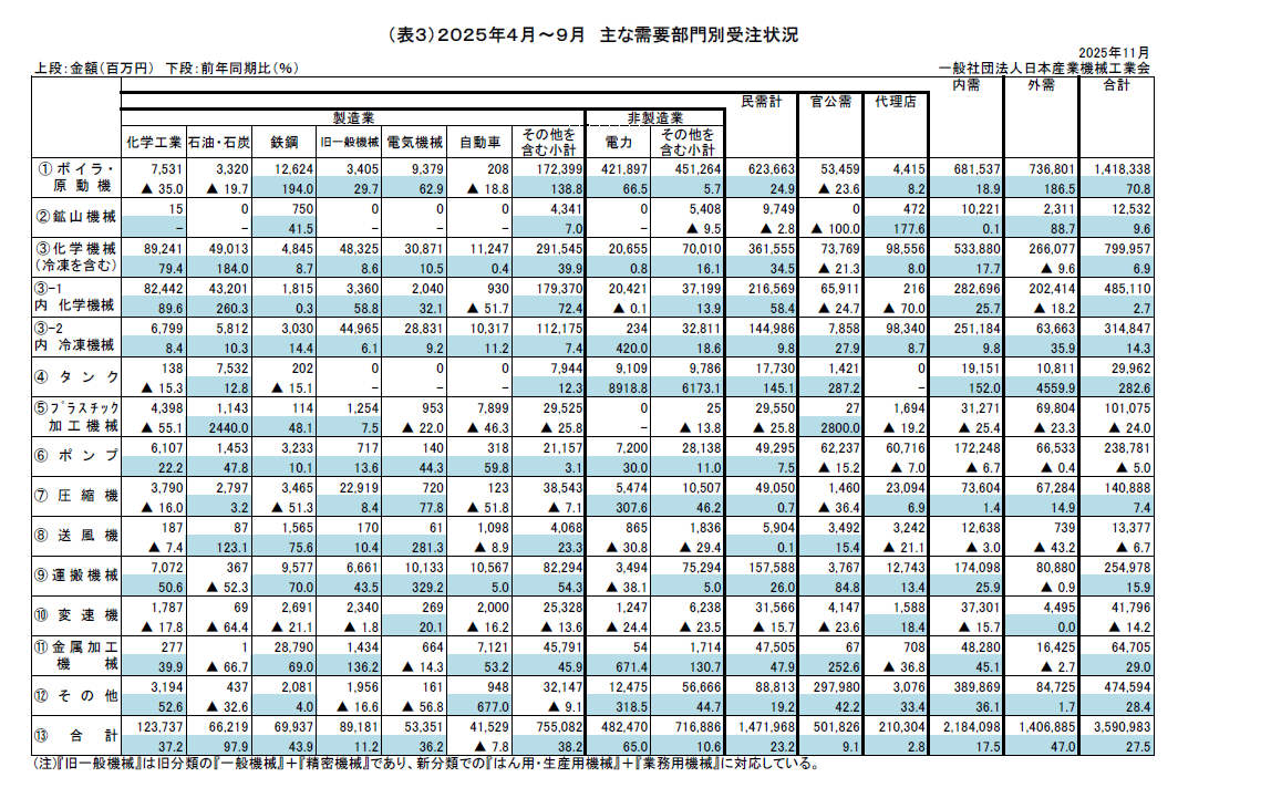 2025年度上半期 産業機械受注状況(2025年4月~9月) 2025/11/1810:20配信 1 2 3 3 3 タグ 産業機械受注状況 最終更新:2025/11/1810:33 一般社団法人 日本産業機械工業会