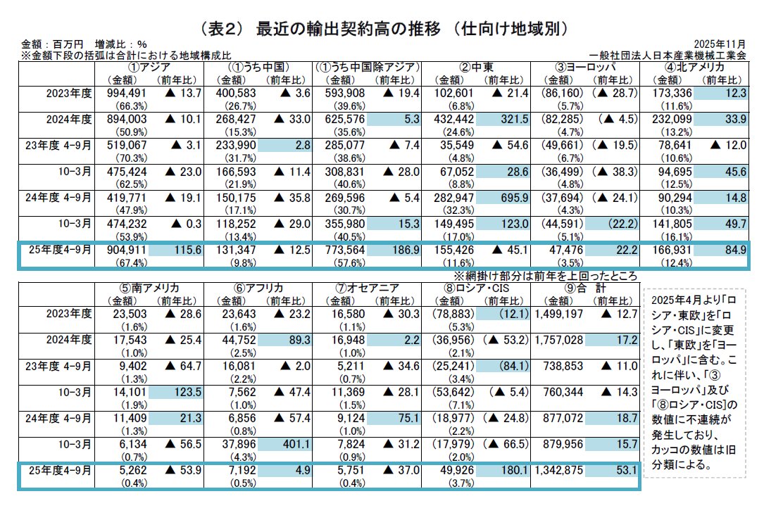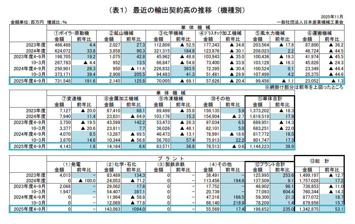2025年度上半期 産業機械輸出契約状況 (2025年4月~9月)