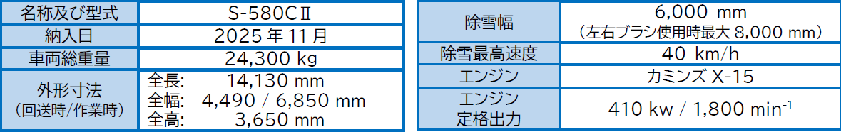 本機は、ブラシ式除雪車の中でも最大の除雪幅を有しており、一度に広範囲の除雪作業が可能です。これにより、除雪時間の短縮と省人化に寄与します。また、従来機からエンジンを刷新したことでブラシの回転トルクが向上し、除雪性能をさらに高めています。