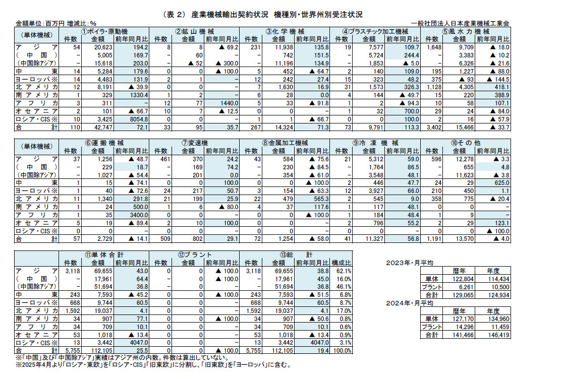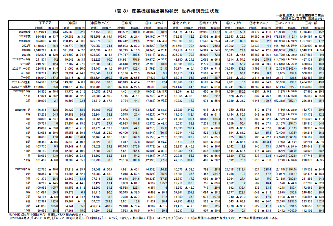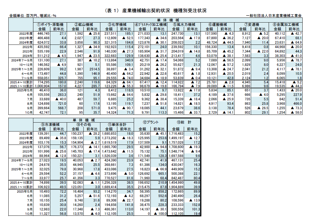 2025年10月 産業機械輸出契約状況