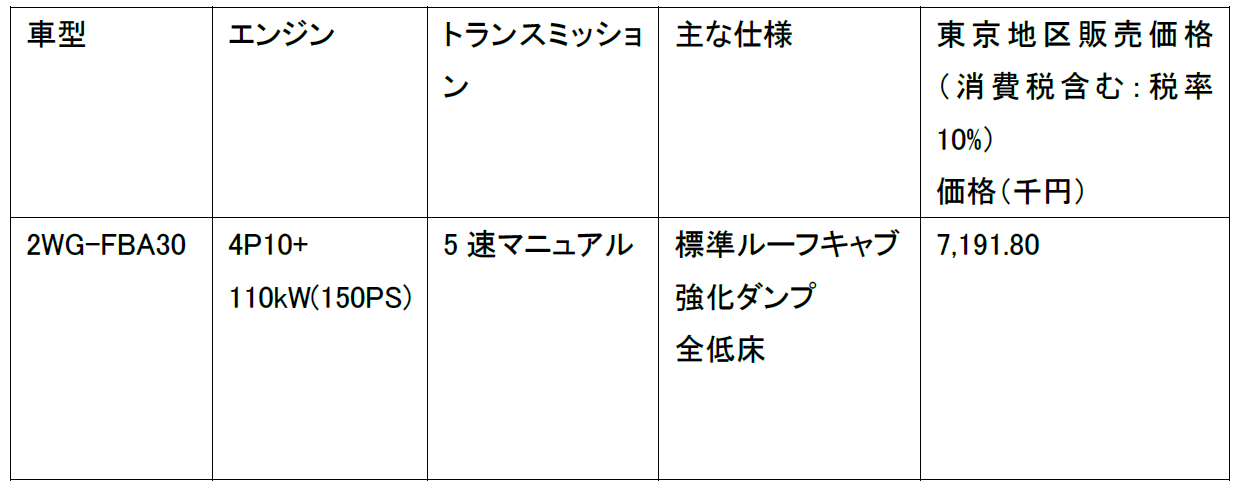 画像はFBA30B21S00L、ボデーカラー(ナチュラルホワイト)、標準キャブ、標準ルーフ