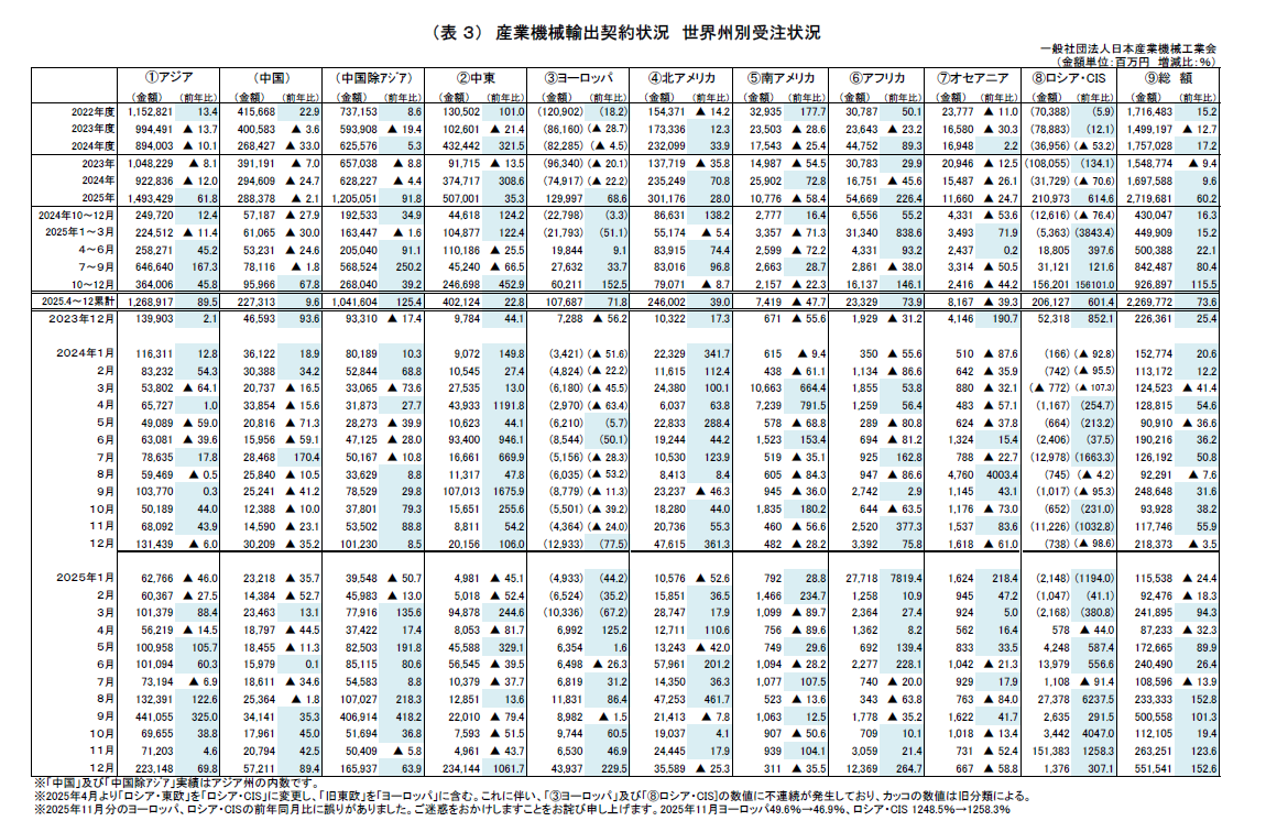 中東、ヨーロッパの減少により、前年同月比▲20.1%減となった。
