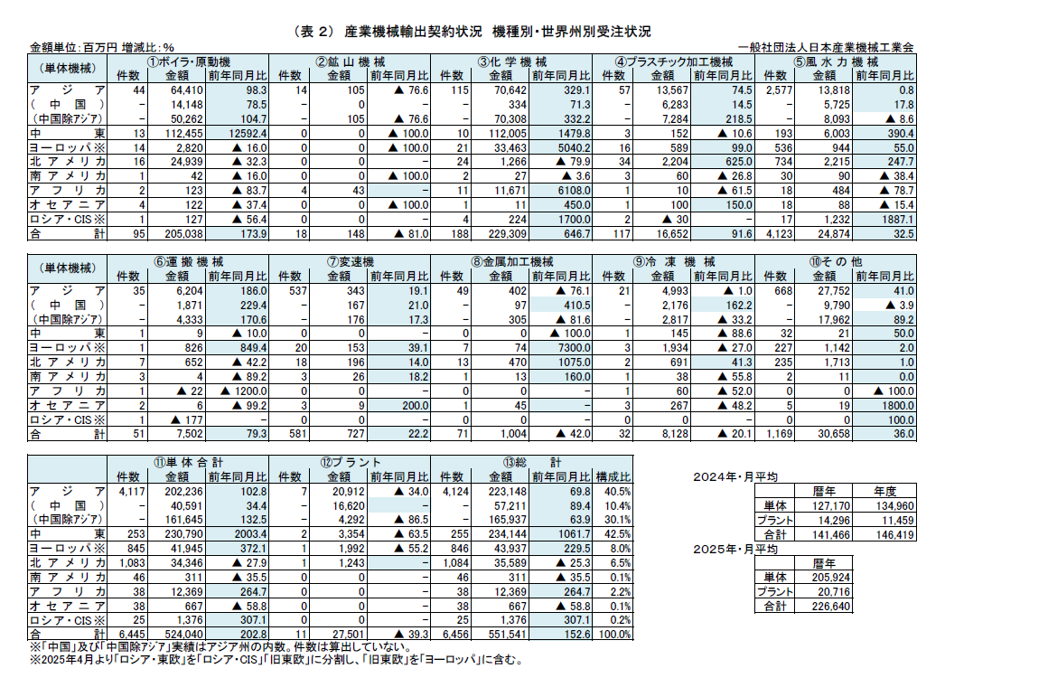 本月の主要約70社の輸出契約高は、5,515億4,100万円、前年同月比152.6%増となった。