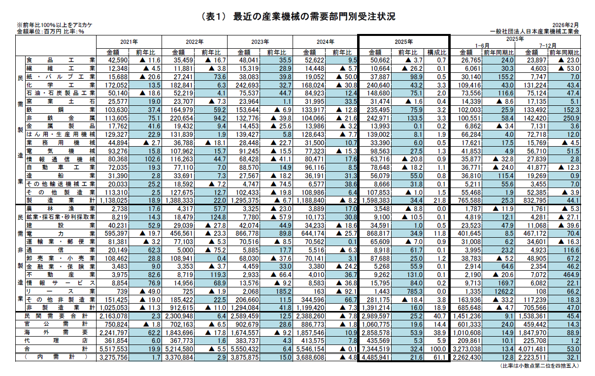 2025年 産業機械受注状況(2025年1~12月) 2026/02/1911:45配信 1 2 3 2 3 タグ 産業機械受注状況 最終更新:2026/02/1911:56 一般社団法人 日本産業機械工業会