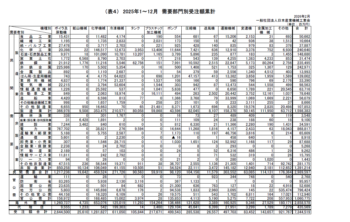 2025年 産業機械受注状況(2025年1~12月) 2026/02/1911:45配信 1 2 3 3 3 タグ 産業機械受注状況 最終更新:2026/02/1911:56 一般社団法人 日本産業機械工業会