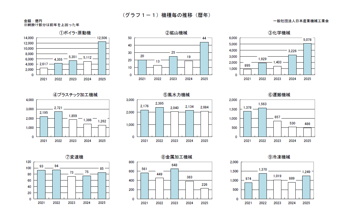 2025年の主要約70社の産業機械輸出は、アジア、中東、ヨーロッパ、北アメリカ、アフリカ、ロシア・CISの増加により、前年比60.2%増の2兆7,196億円となった。