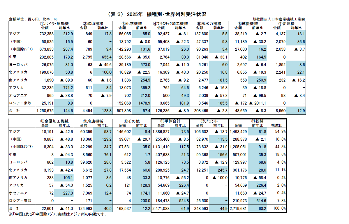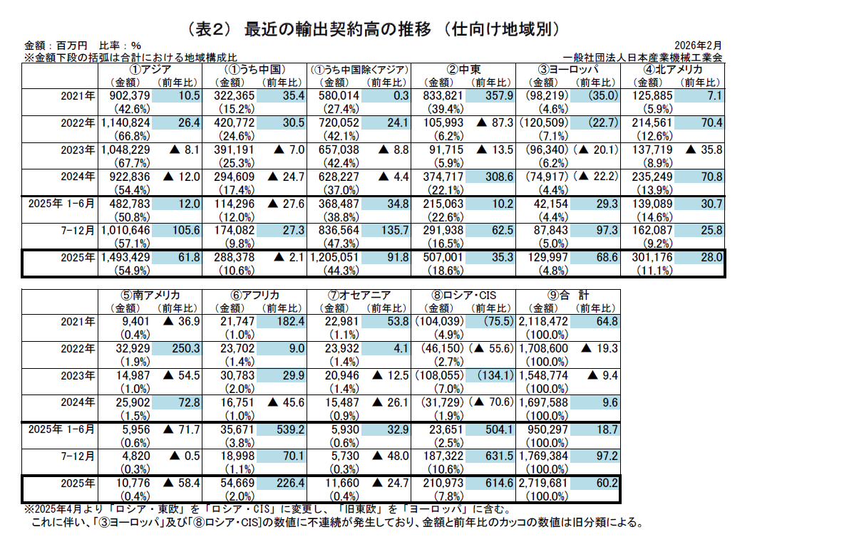 2025年 産業機械輸出契約状況(2025年1~12月) 2026/02/1911:52配信 1 2 2 2 タグ 産業機械輸出契約状況 最終更新:2026/02/1911:56 一般社団法人 日本産業機械工業会
