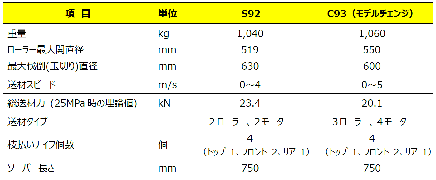 当社は2011年より、高いグリップ力による確実な送材性能に優れるローラーキャリータイプ(※2)のC93を装着したハーベスター仕様車(※3)を日本で販売しており、その生産性に高い評価をいただいています。モデルチェンジによりその性能を一段と高めたC93を、このたびハーベスター仕様車として販売開始しました。