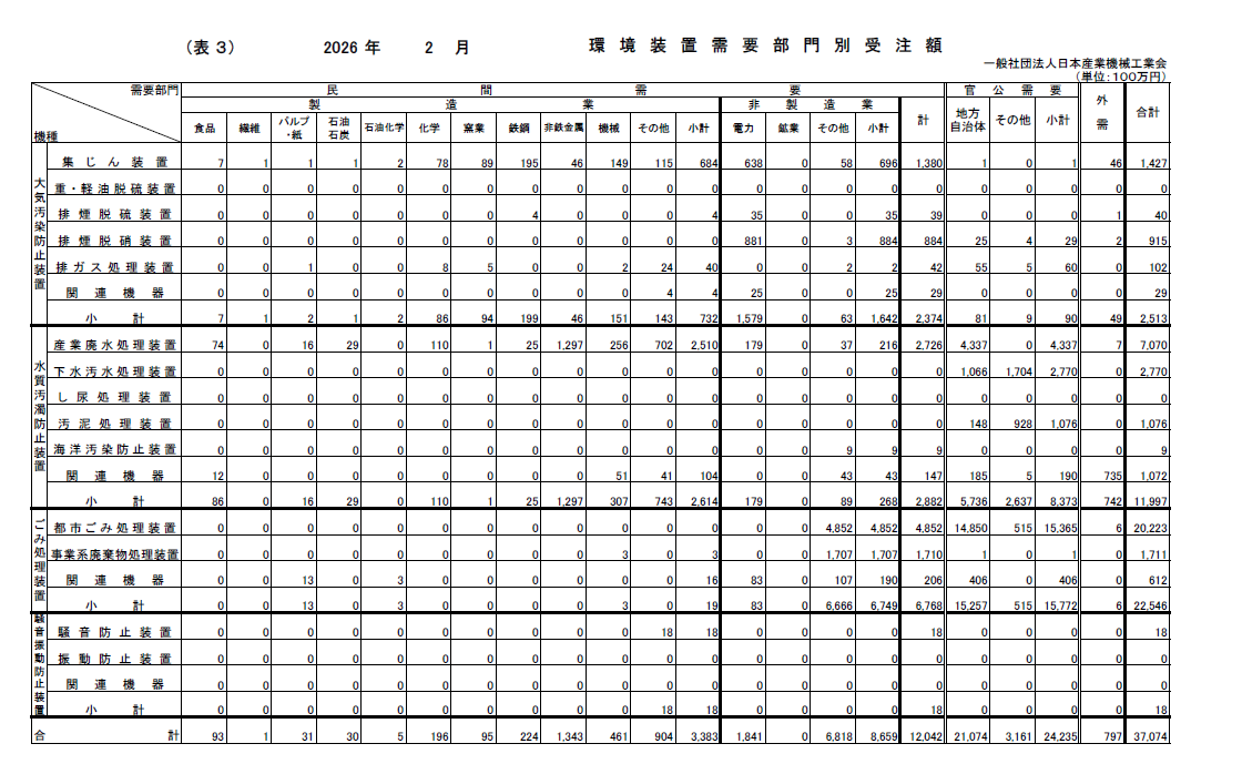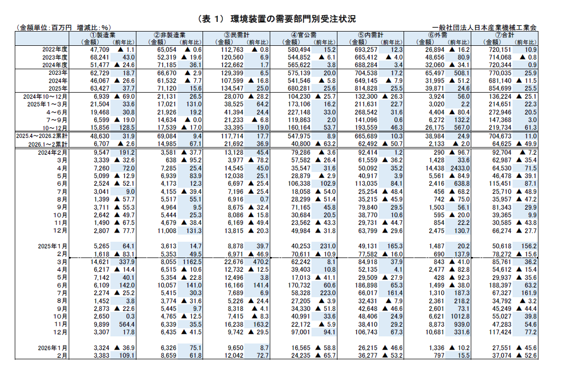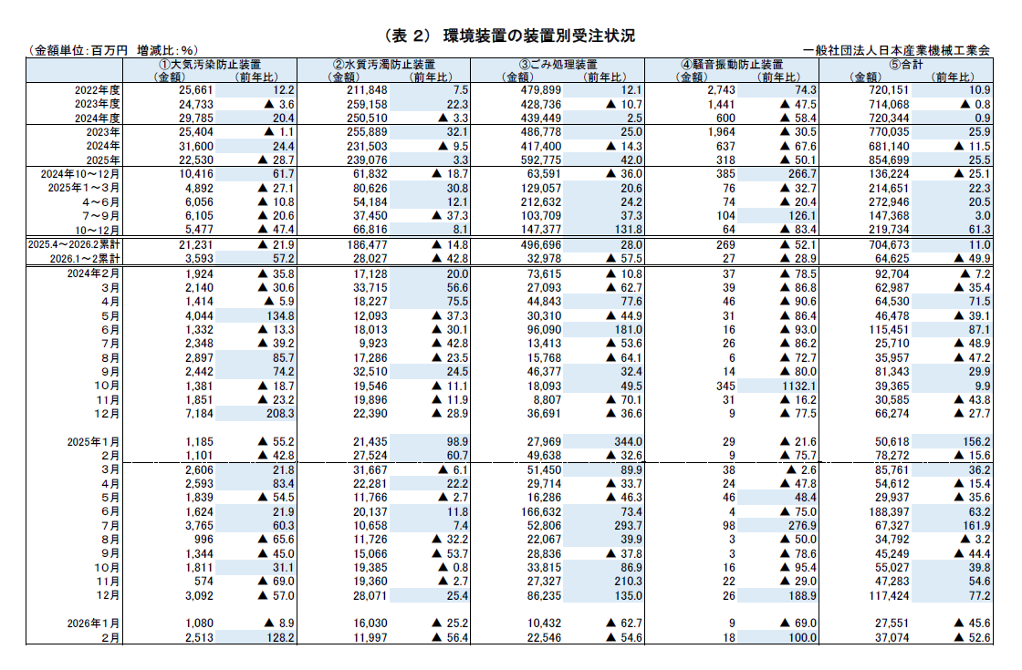2026年2月 環境装置受注状況