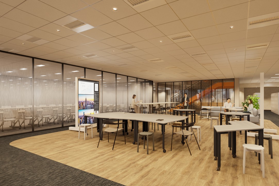 現在の本社に比べて約2割増床し、ゆとりのあるオフィス空間を確保します。また、オフィスフロアとなる23~25階をつなぐ内階段の設置やグループアドレス制の導入により、部門や役職の垣根を越えた日常的な交流を促進します。