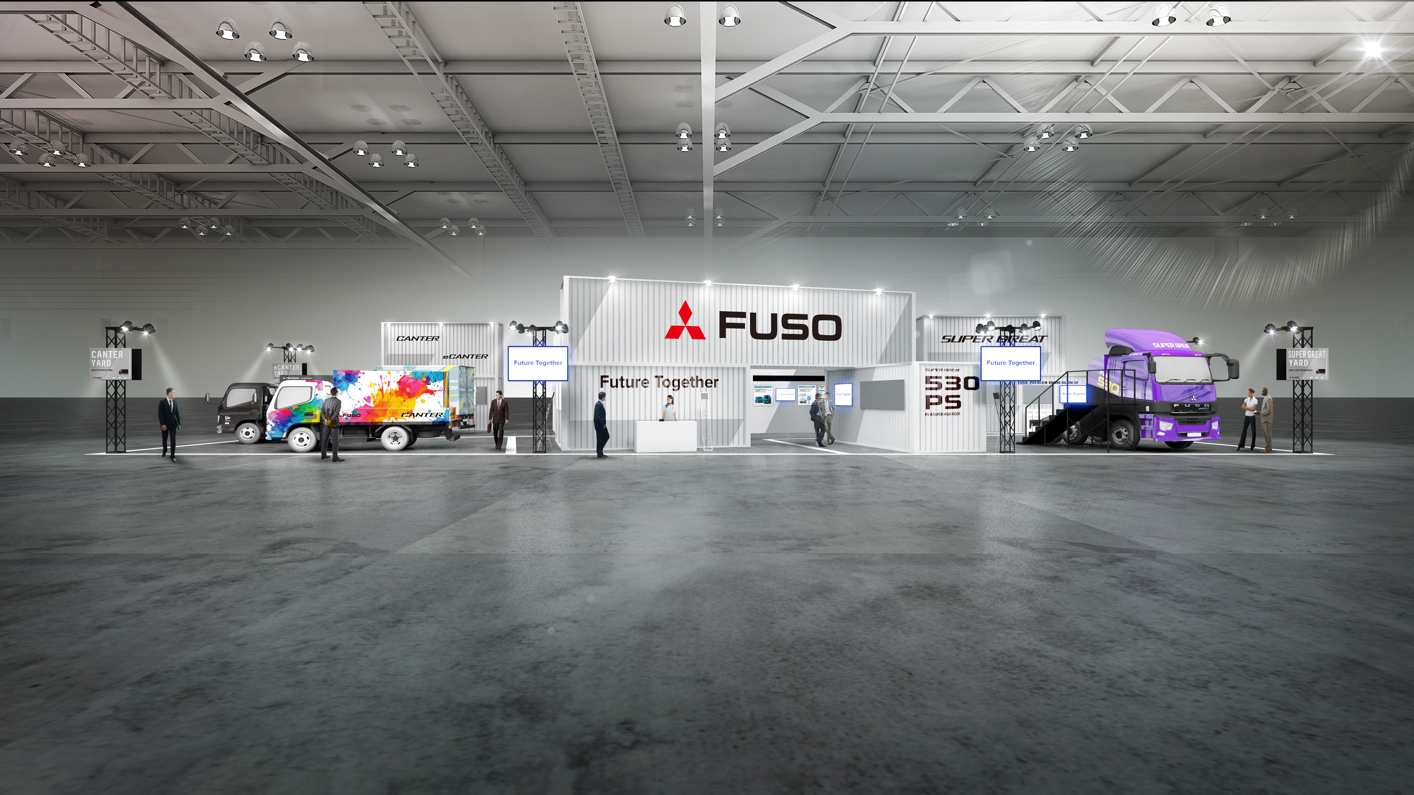 - 大型トラック「スーパーグレート」セミトラクタ、電気小型トラック「eCanter」特別塗装車を展示